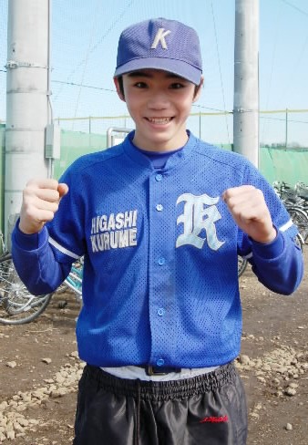 佐宗んくんは4番サードと打撃の中心です! 175センチ、78キロ、右投げ右打ち、握力は右が58,左が51キロ。ガッチリ体型からフルスイングをすると痛烈な打球が飛んでいきます!目標は「全国大会出場!それと、ジャパンのメンバーになって世界大会に出ること!」 強気なところもいいねっ! 君ならできる~~!p(^^)q