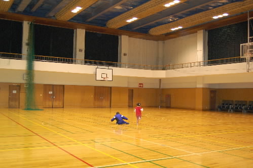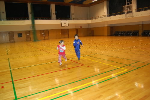 取材に付き合ってもらった野球小僧くん&勝利の女神ちゃんは、がら~んとした体育館で大はしゃぎっっ