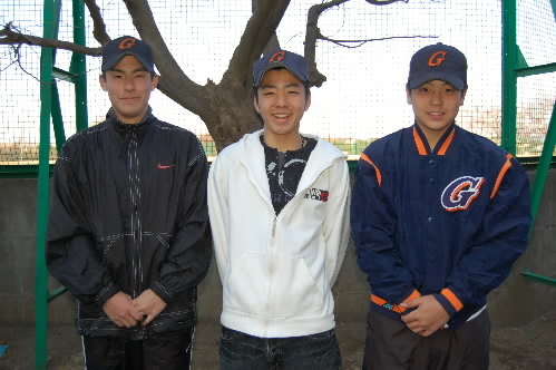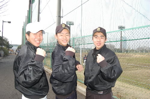 ▲すでに高校に合格した3年生選手も練習にきていました! 左から野田将太郎くん、松本卓真くん、奈良木智宏くんの主力3人!