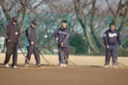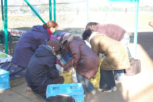 ▲ここではお父さん、お母さんたちも大事な戦力です~。練習の最後、選手だちがダッシュ、体操をしている間、お父さんたちがグラウンド整備、お母さんたちはボールを仕分け。本当は自分たちでグラウンド整備してほいしいところですが、時間が限られているので仕方ないのかなっっ これで、選手たちは時間と場所をフルに使って練習できるというわけです。親に感謝ですねっっ