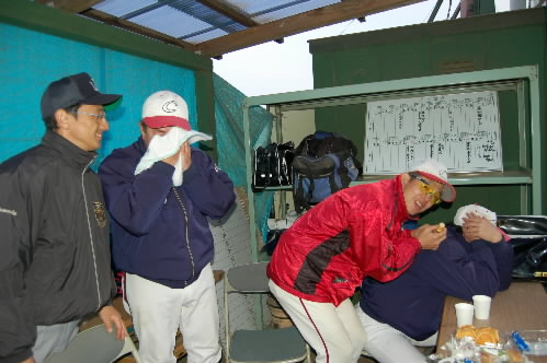 練習後、調布のコーチ陣と井戸端会議っっ? いろんな野球の話題が楽しいっす(^^)