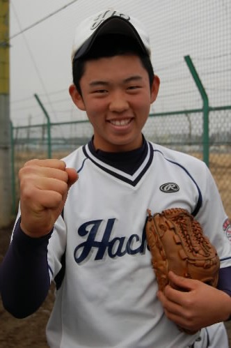 ▲「オレが投げれば勝てます! 余裕です!」と、自信満々なのは、エース佐伯くん。故障から復活して、ピッチングが冴えまくっているとか。特にフォークはスゴイですっ!!