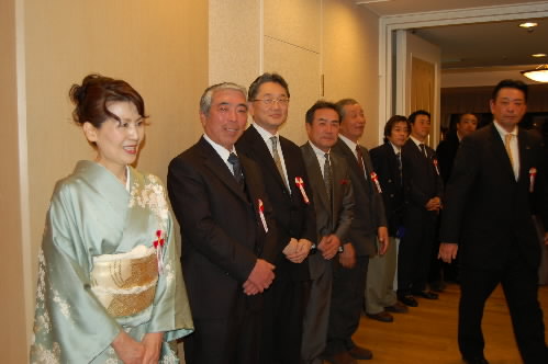 ▲高校野球関係者、勢揃いっ 代表で東亜学園の上田滋監督がご挨拶