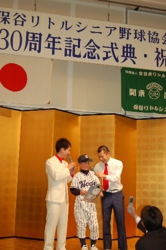 夜は保谷シニアの創立30周年にご招待いただき、行って参りました! 野球小僧くん&勝利の女神ちゃん連れで出席っす(^_^; シニア関係者、高校野球関係者など多数いらっしゃっていました(^_^)