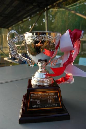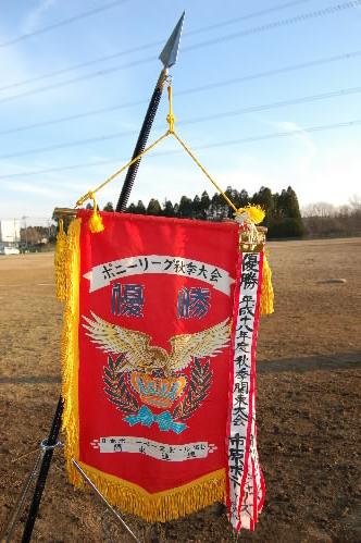 ▲これがポニーリーグ関東大会の優勝旗と優勝カップ! 市原ポニーの選手たちはもちろん、他のポニーの選手たちは、これを目標にガンバリましょう!