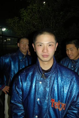 ▲こちらがまだ大学4年生22歳の山中慎太郎監督! 市立船橋~国士舘大学。昨年末のポニーリーグの懇親会でいただいた名刺に書いてあった携帯番号が違っていたのにはびっくりっっf^_^; 名刺を作るときはお気を付けて~~っ(;^_^A
