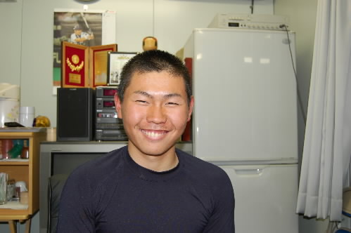 大田くんは「最近寝不足です~」って。どのくらい寝てるの?って聞いたら「5,6時間ですよ~」って。「そりゃ、激しい練習してるのに、厳しいね」って言ったら、「あ、授業中も寝てるから、それ入れたら7~8時間は寝てるか」だってf^_^; その話しに、周りのみんなも「そうだな~」とうなずいていたのには笑ってしまいましたf^_^; 授業もちゃんと聞きましょう!!