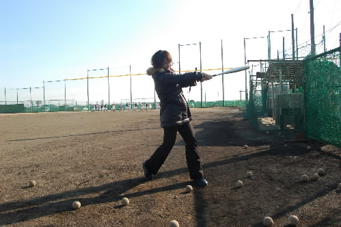 ▲私も取材だけじゃなくて、野球の方も始動~!ってことで、まずは廣瀬くんとキャッチボールをガンガンやりまして、その後は、ティーバッティング!! まだまだビシバシ投げられるし、まだまだスコンスコンと打てますよぉ(^.^)b 花屋コーチには「1年生の〝一部〟よりはウマイです!」って言われました~(^_^; よし! 今年は中学1年生よりうまくなることを目標に頑張るぞ!!