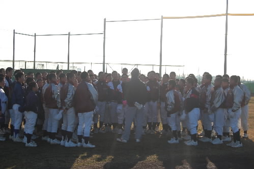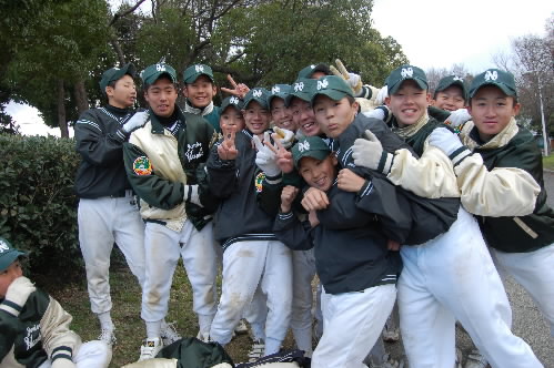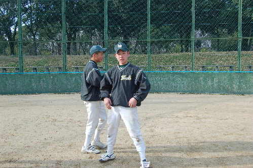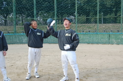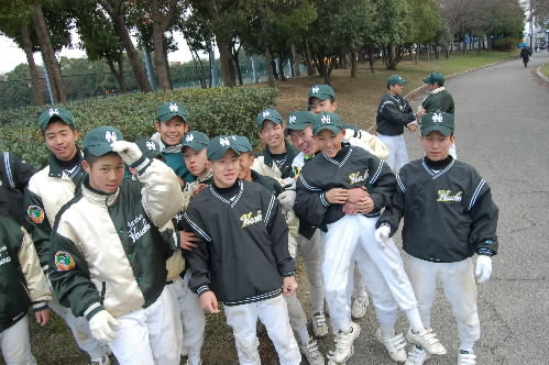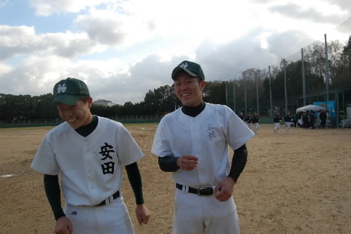 現在、2年生を指導し、さっきも書いたように関西秋季大会優勝に導いたのは、37歳の坂本清治監督。タイガースカップのとき、ブログに同級生と書いてしまいましたが、今日もう1回確かめたら、微妙に坂本監督の方が年上でした(^_^; 坂本監督は18歳からコーチをしていますから、指導歴はもう20年近く。私は8年ほど前に取材させていただいてからのお付き合いになりますが、今までお互いに同級生だと思いこんでいました(^_^; 坂本大先輩、失礼いたしました!!(;^_^A