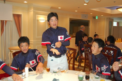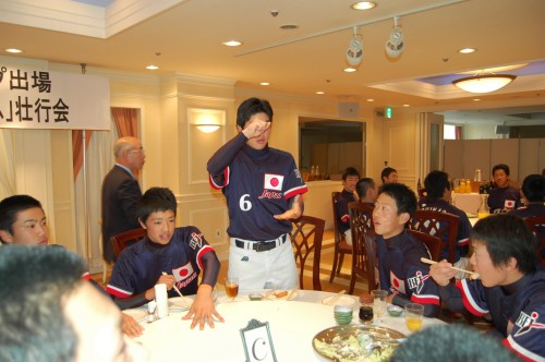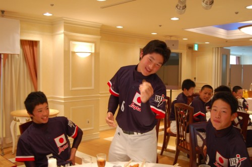 最初から飛ばしまくっていた上福岡シニアの城戸愉快くん。前に新聞に名前を掲載するので入力していたときに、「この選手、名前『愉快』って書いてあるけど、珍しいな~間違いじゃないかなっ??」っていろいろ資料を持ち出して確認してしまいました。でも、どの資料も城戸愉快で間違いなし。「名前が愉快だなんて愉快だわ~」と一人ニンマリしていたら、実際会ったら、ホントにホントに愉快な選手なんでウケました~。