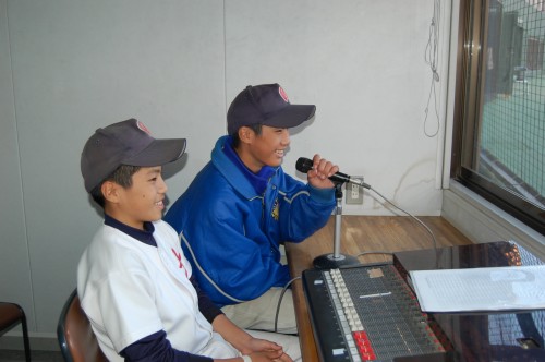 大会運営のお手伝いをしているのです! 小学生たちの試合、主審以外の塁審はユニフォームの上にジャージをきたシニアの選手。メンバー外の選手がやることが多いボールボーイもシニアの選手。そして、球場に着いて「ん? 何かいつもと違う!」と思ったのがアナウンス! ふだんはお母さんたちがやることが多いアナウンスも大田シニアの選手たちがやっているのです! キレイな声とは言えないですが、みんな、ゆっくりと落ち着いてちゃんとアナウンスしていました! 練習してきたのかな? 上手でしたよ!!(#^.^#)