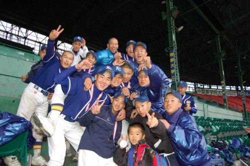 ▲優勝した神戸中央シニアのみんなと、ウチの野球小僧っっ