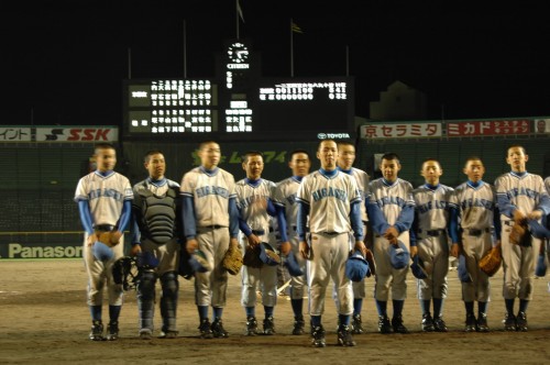 準決勝では神戸中央と壮絶な試合の末、延長でも決着着かず抽選に…。残念ながら、そこで負けてしまいました。山本投手、将来が楽しみなピッチャーです!(写真、ちょっとぶれててゴメンなさいm(__)m)