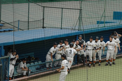 ▲2006年秋の東京都大会準々決勝、対創価戦4番・中村晃選手がホームランを打ったときの一枚。