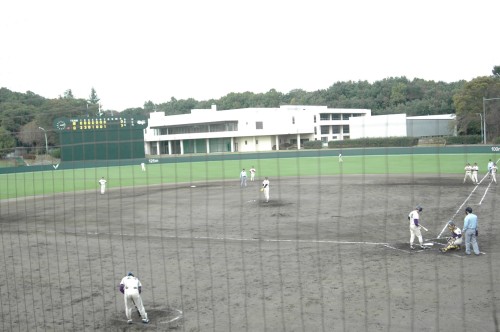 最近、ウチのすぐ隣りに明治大学&明大明治高校の野球部グラウンドが引っ越してきました! 前々から「明大野球部グランドが調布から府中に移転するらしい…」とは聞いていたのですが、1年ぐらい前、回覧板で、それがウチのすぐ隣りの、もと三井物産総合グラウンドだと知ったときは、大喜びしてしまいました!(≧▽≦)♪♪