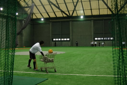 その後、ジャイアンツもと投手コーチで、青葉緑東シニアでコーチされてる関本四十四さんが室内入っていらっしゃり、おしゃべりしながら一緒に練習見学っ