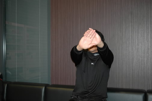 こっちに気付くと、「うわ~~~! どうしたんっすか~!!☆(゜▽゜)☆」って寄ってきたっ 目をブワーっ見開いてハグハグしそうな勢いでっ 思わず私も寄っていって「取材取材~!」ってチョーノくんを指さしながら体に、、、、おっと~触れてしまったっっ