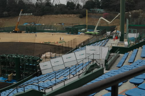 さて、ジャイアンツ球場! 今度、ナイター照明つくんですよねっ 球場内に巨大な照明がドーン、ドーン、ドーンと6機(?)おいてありました。総工費4億円ってやつですね~!! で、今年から2軍戦がダブルヘッダーで行われるんですよね~楽しみっ!! 日ハム戦なんかは、人、入るでしょうね~佑ちゃんが2軍であれば(^。^;)